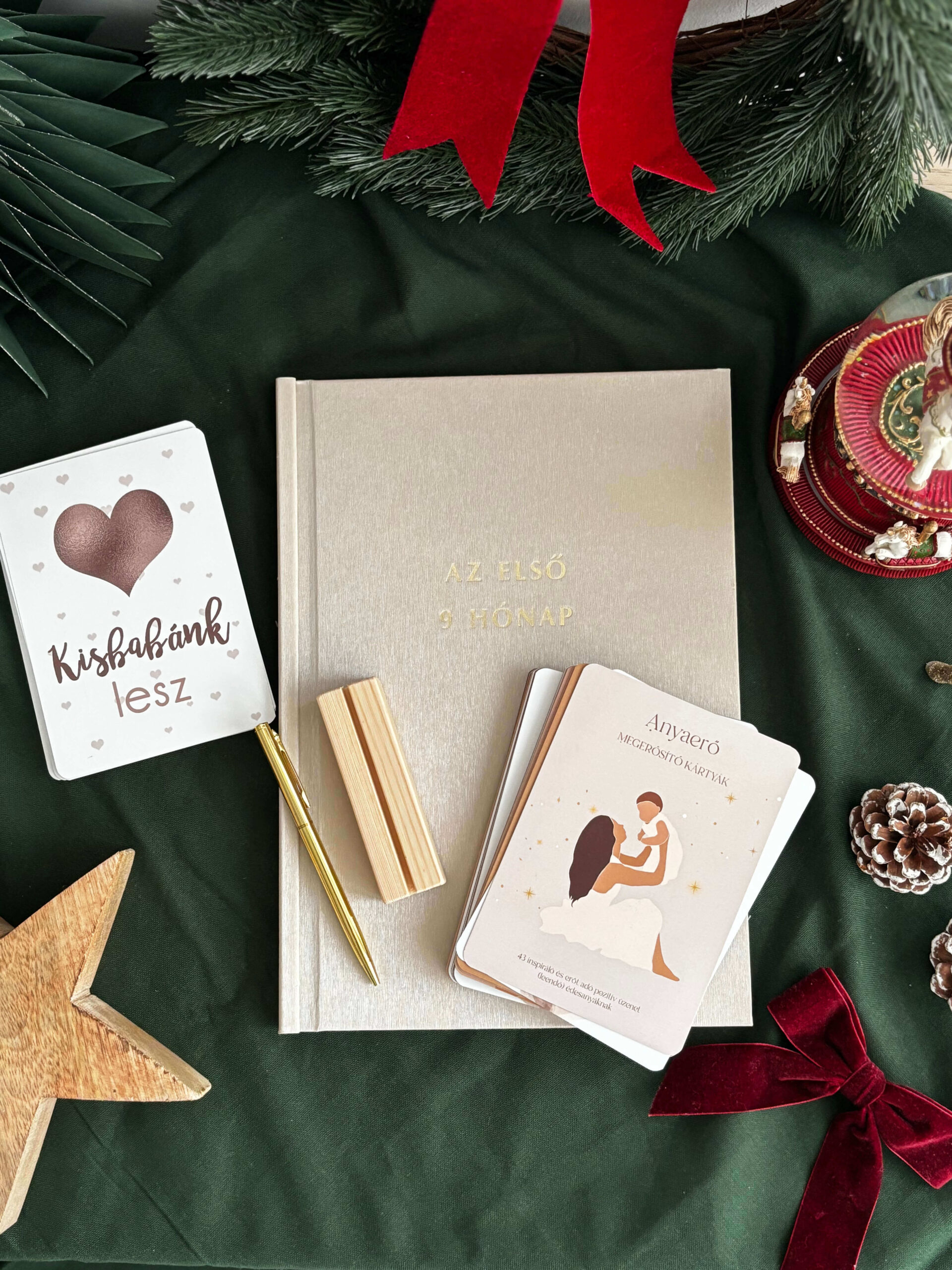 ✓ Limitált, ünnepi összeállítás ✓ Prémium minőségű, kézzel válogatott csomagelemek ✓ A csomag tartalma: ✓ Várandósnapló 7 választható színben, időtálló prémium kivitelben, sok-sok helyet hagyva az emlékeknek, ultrahang képeknek, gondolatoknak ✓ Várandós mérföldkártya csomag (27 db) letisztult dizájnnal a pocakos fotókhoz ✓ Anyaerő megerősítő kártyacsomag (43 db), ami érzelmi támogatást nyújt a babavárás alatt és a gyermekágyas időszakban. ✓ Esztétikus fa kártyatartó ✓ Arany színű toll a napló kitöltéséhez