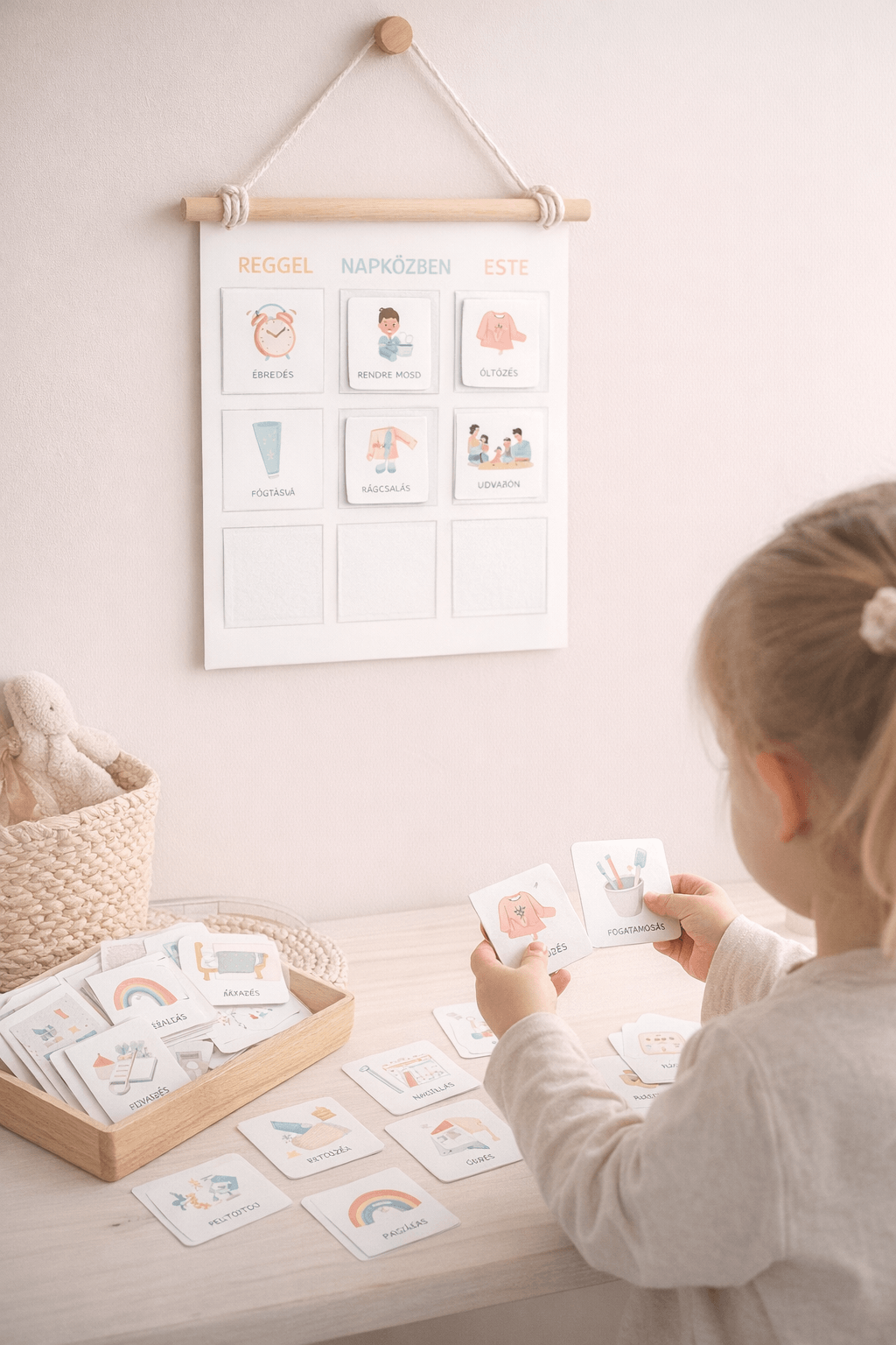 A kisgyermekek számára a világ gyakran kiszámíthatatlannak tűnik. Egyik tevékenységből a másikba való átmenet, a reggeli készülődés vagy az esti lefekvés sokszor feszültséget, ellenállást vagy bizonytalanságot vált ki. Nem azért, mert „nem akarja”, hanem mert egyszerűen nem látja előre, mi fog történni.